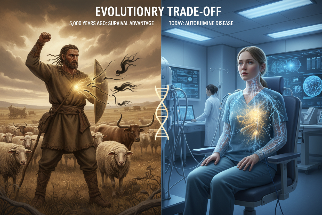 This discovery reframes Multiple Sclerosis. It is arguably not a genetic “defect” in the traditional sense, but rather a genetic legacy. The immune system of an MS patient is functioning exactly how it evolved to function to save a Bronze Age herder from extinction.